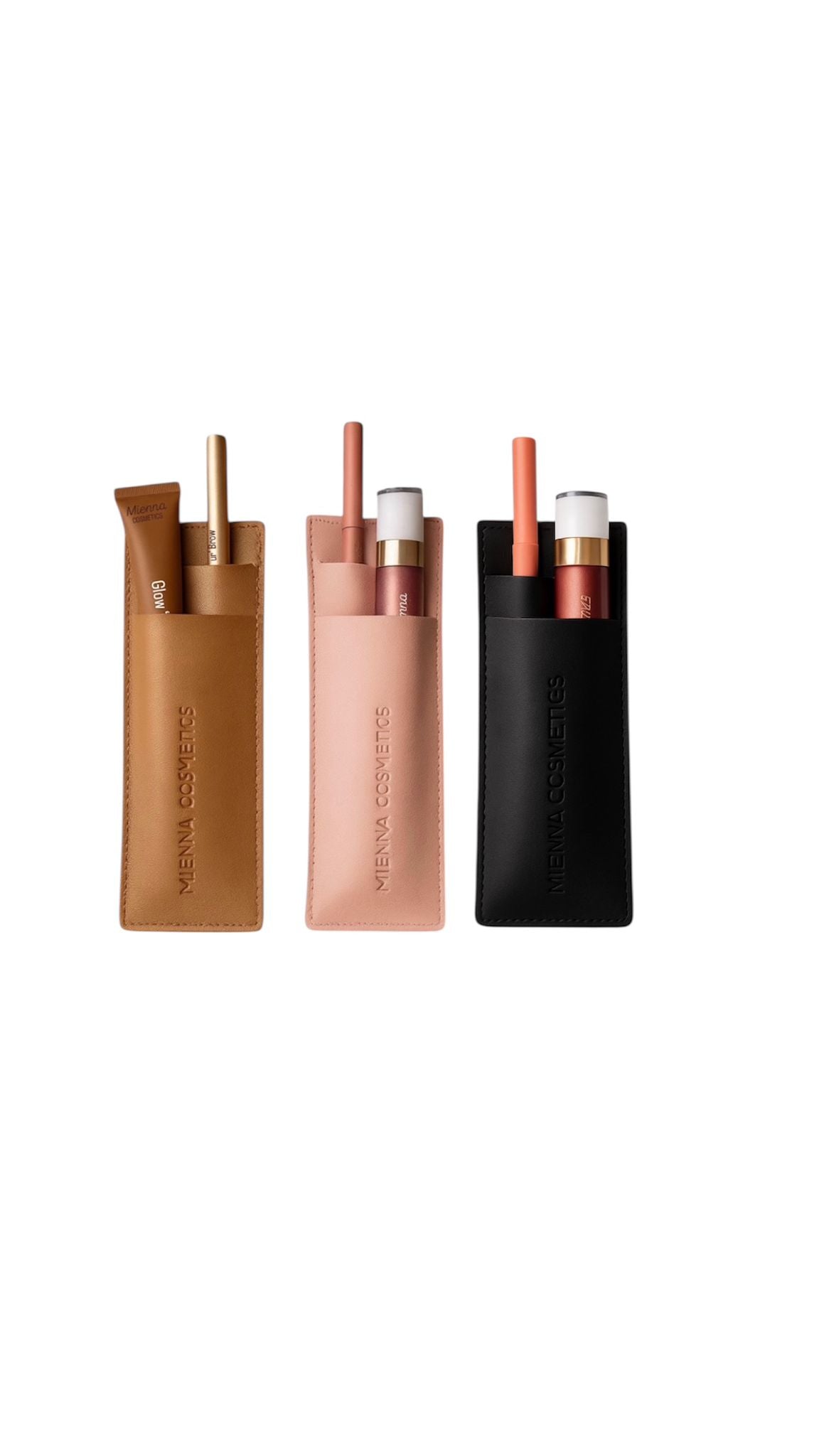 Perfect for makeup enthusiasts, this case fits snugly in your handbag. It includes a mirror for quick touch-ups on the go. The Mienna Glam case is specifically designed for storing makeup cosmetics. It features two compartments, ideal for organizing lip glosses, lipsticks, and brow pencils.